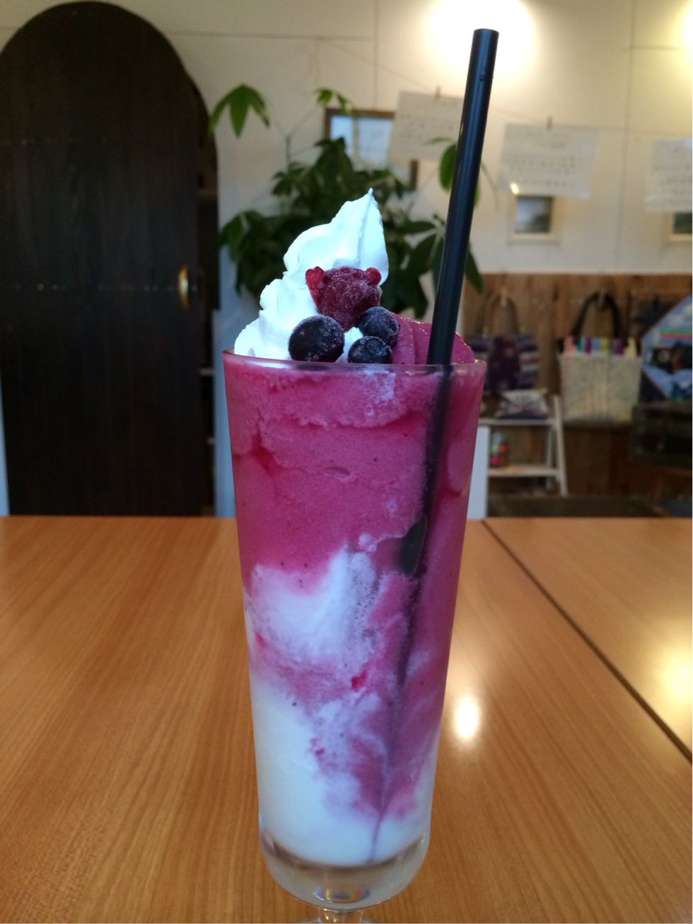 まず、上層だけを食べるとブルーベリーの甘酸っぱさと微細氷のシャリシャリの爽快感が火照った身体を駆け巡る!!!