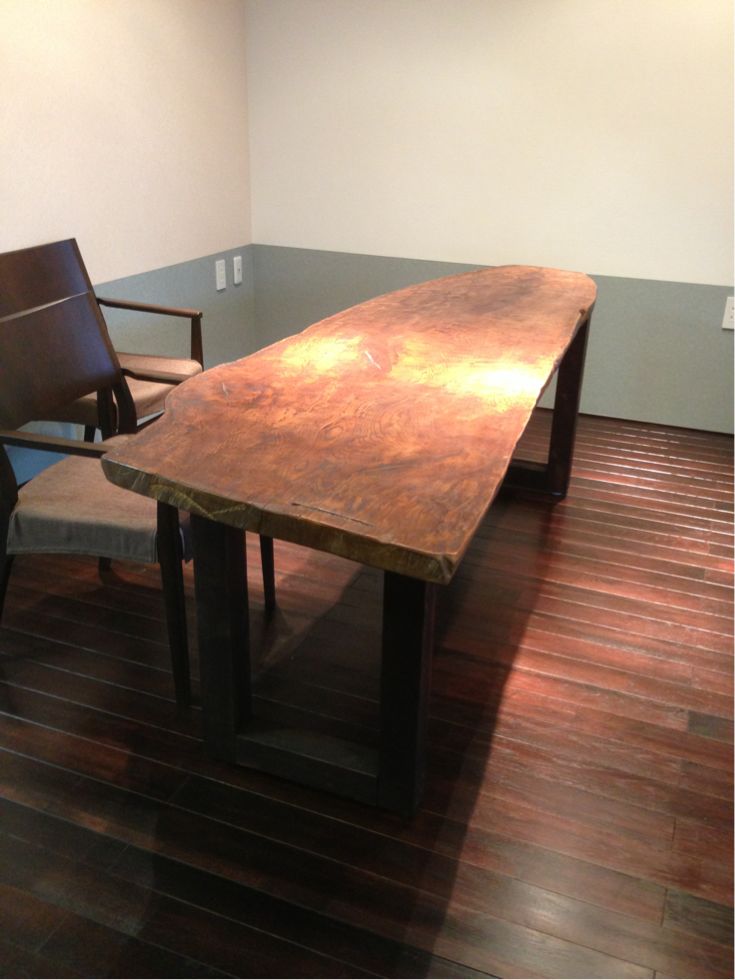 一枚板のテーブルというと純和風なイメージですが、さっぱりとしたコーティングとシンプルな脚でモダンな印象に仕上がりました。