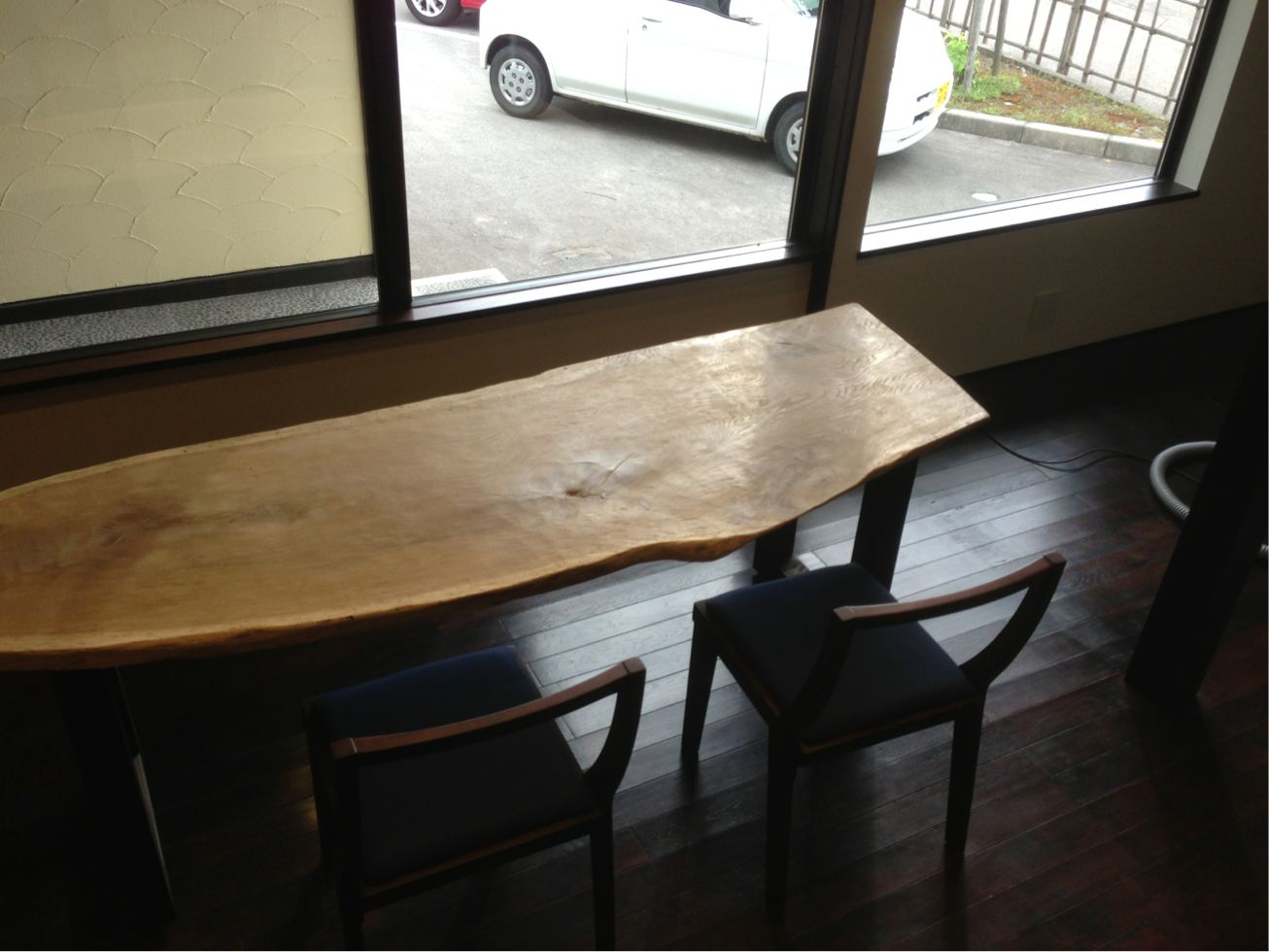 一枚板のテーブルを2台、製作させて頂きました。