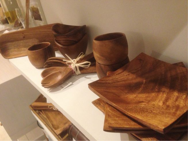 アカシアの木で作られたカラトリーやボウル、器・・・
